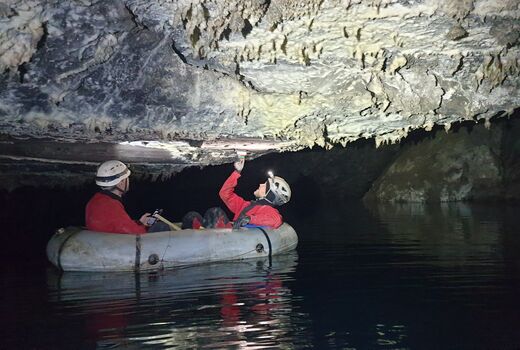Eines der Langzeitprojekte im Südharz: Die Questenhöhle. Dieses reizvolle Objekt hat Potenzial für viele Fragen der Höhlen- und Karstforschung. Neben dem Standard-Monitoring werden hier auch die Laugdecken und die schrägen Wandflächen exakt vermessen. An einigen Stellen geht das bequem auf dem Höhlensee vom Schlauchboot aus.